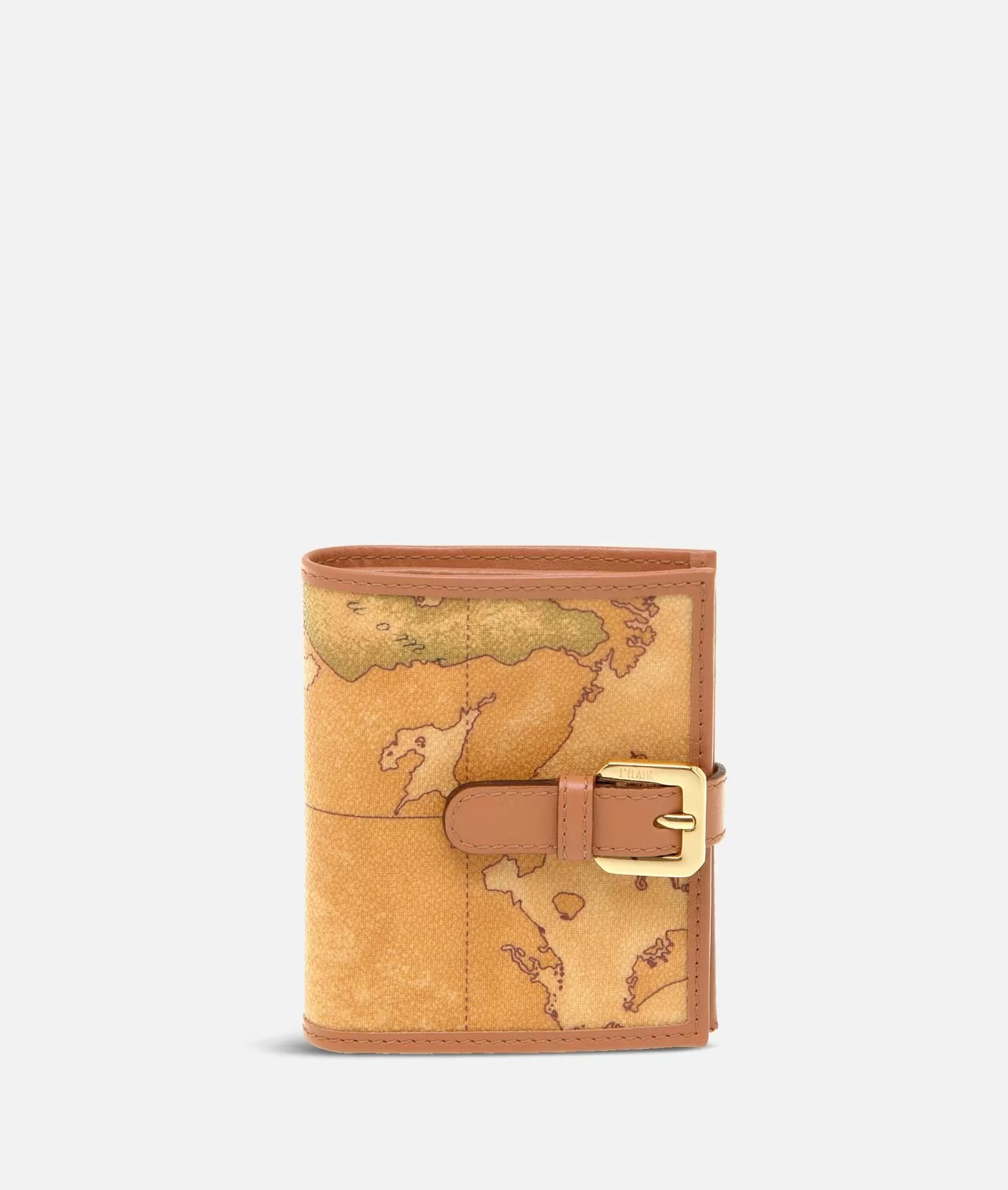 Portafogli donna in tessuto stampato con cartina geografica Geo Classic con diversi scomparti per banconote, carte di credito, ricevute e monete, chiusura con linguetta impreziosita da una fibbia in metallo dorato. Piccolo ma capiente, conterrà tutto il tuo nécessaire e scivolerà facilmente anche nelle borse mini.
