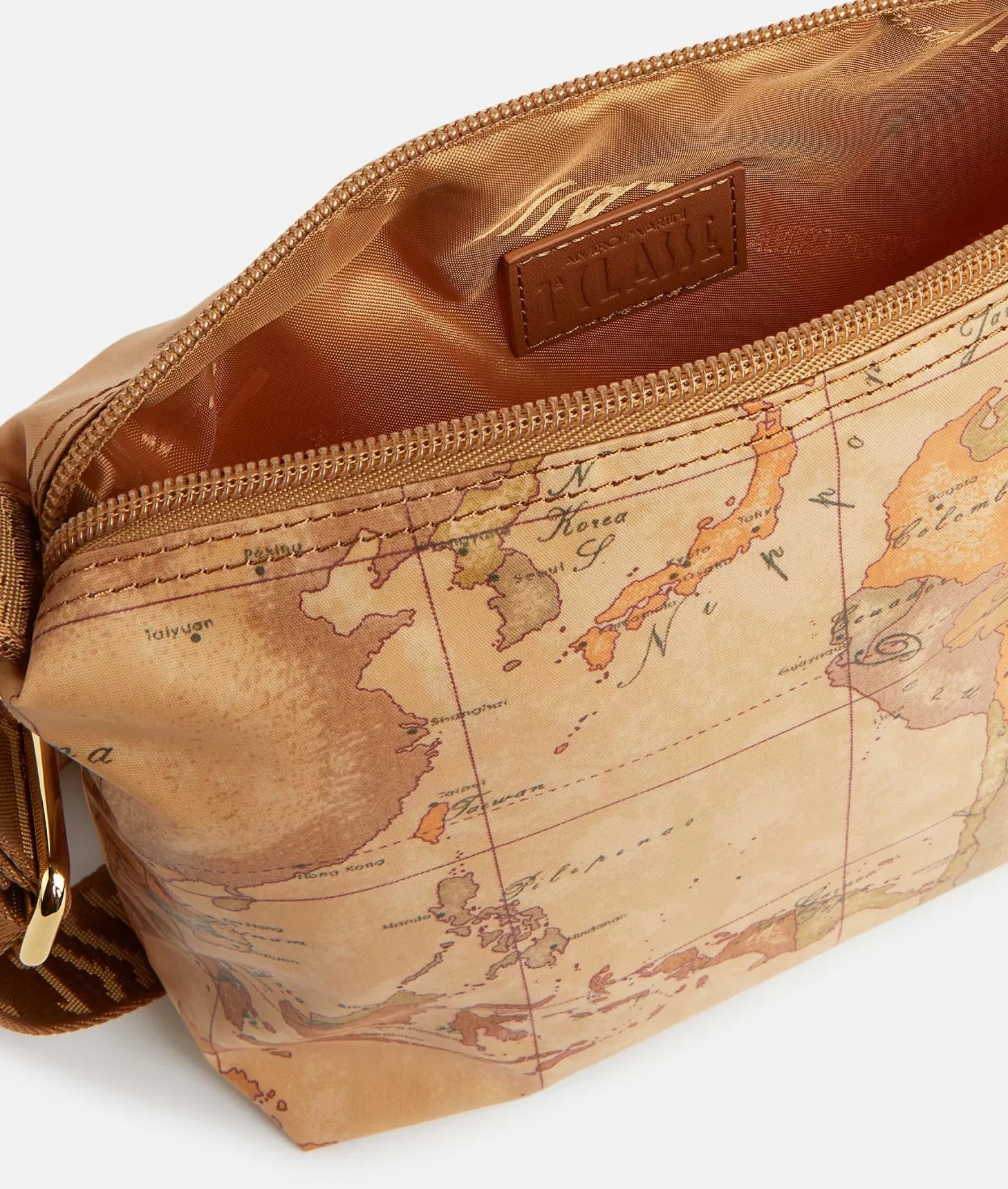 La tracollina piccola in tessuto soft sfoggia l'iconica stampa Geo Classic e il logo 1ᴬ Classe sulla tracolla regolabile in nastro. La morbidezza del tessuto la rende un accessorio compatto ma capiente, perfetto per tenere l'essenziale a portata di mano in ogni momento della giornata senza mai rinunciare ad uno stile unico.