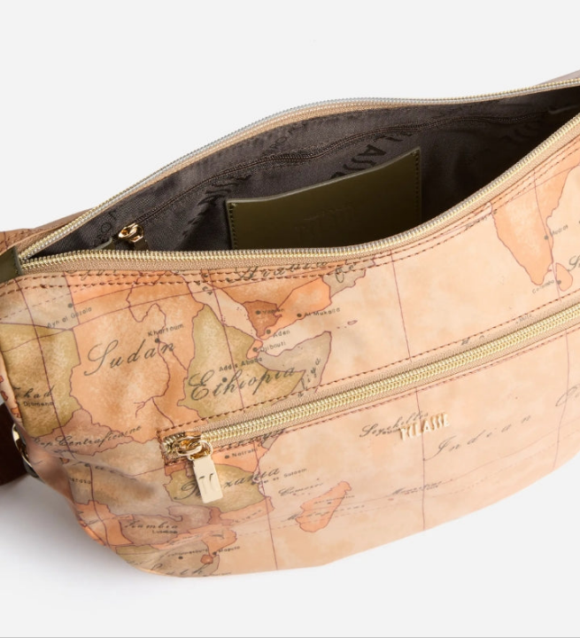 - Tracolla a mezzaluna media in tessuto soft stampa Geo Classic